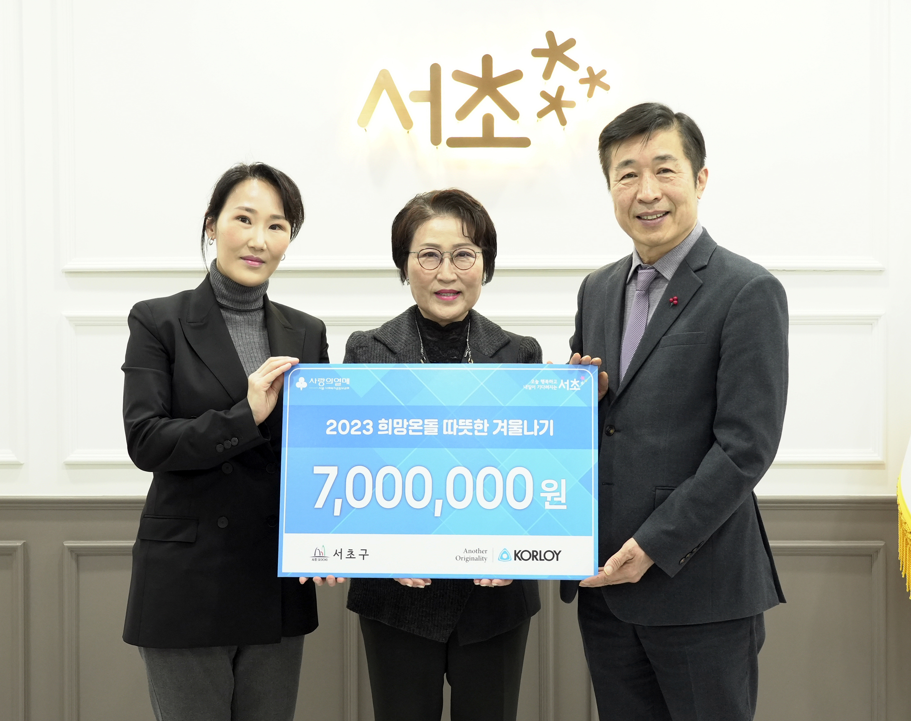 "Korloy Inc. besuchte am 26. Januar 2023 das Büro in Seocho-gu und spendete im Winter 7 Millionen Won für Bedürftige.