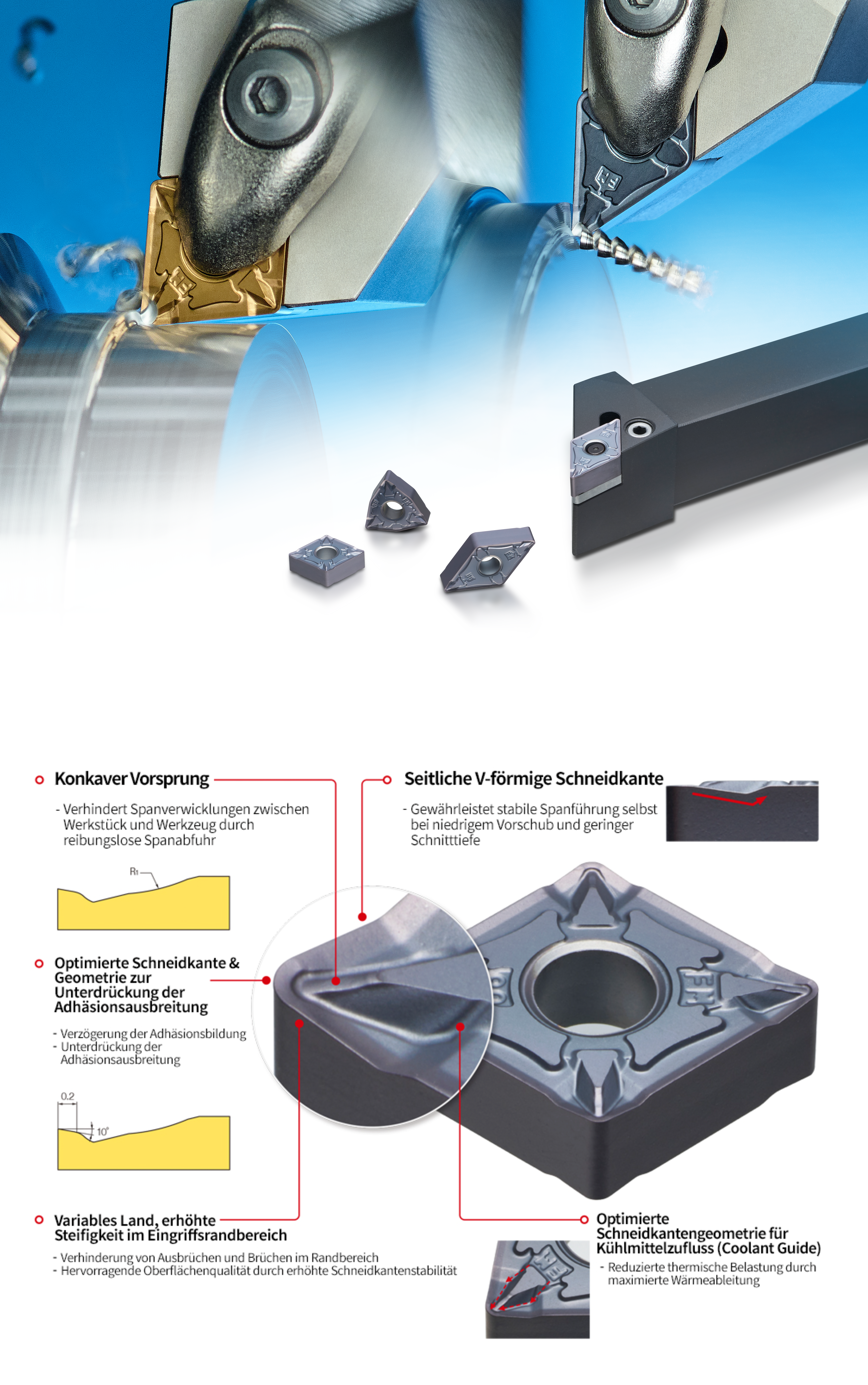 KORLOY hat den neuen FM-Spanchipbreaker entwickelt, der speziell für das Schlichten von Edelstahl ausgelegt ist. Durch eine optimierte Schneidkantengeometrie und modernste Anti-Adhäsions-Technologien wird die Werkzeugstandzeit signifikant erhöht und eine stabile Spanabfuhr gewährleistet.
