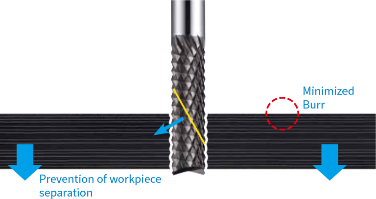 Diamond cut edge design shortens the length of edges where the actual cutting is made, and it lowers cutting load & prevents processing defect.