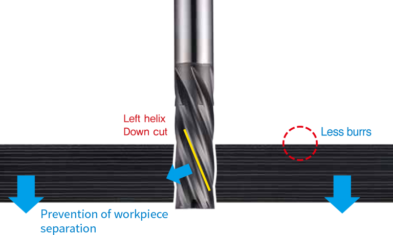 Down cut edge shape also helps clamping force as it enhances cutting force downwards.