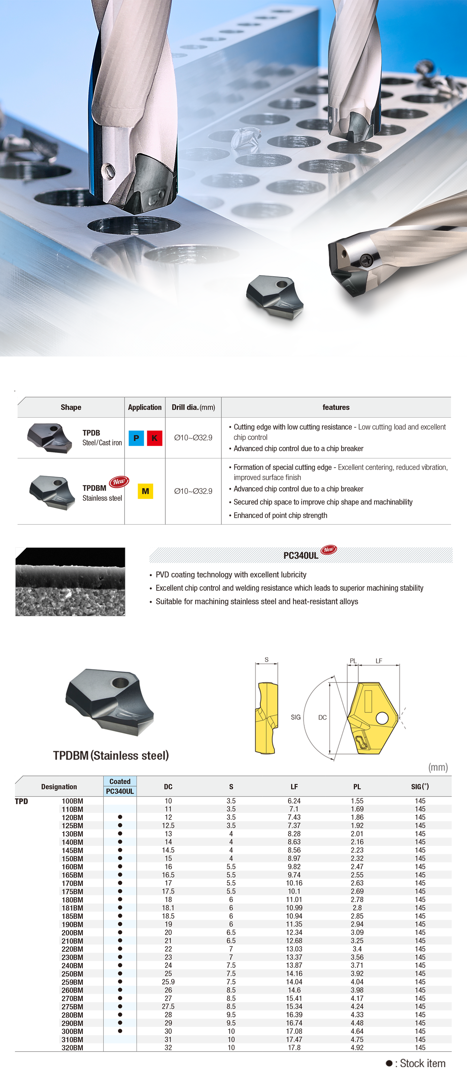 In various industries, there are demands of excellent performance and machining time reduction to improve machining efficiency. Thus, the demand for efficient cutting tools leads to a continuous increase. To respond to these market demands, KORLOY launching the TPDB Plus Drill, a highquality and high-efficiency indexable Drill that enhances machining quality and production efficiency.