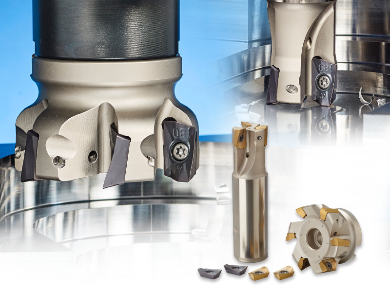 While high speed and high feed machining, severe impact is generated and it causes chattering or even a tool breakage unless proper machinability and strength of a tool are ready. To overcome above mentioned cases, Alpha Mill-X adopted four concepts. First, it significantly lessen cutting load by its exclusive insert design which has a high rake angled chip breaker and high rake angle. Second, it enhanced tool's strength by making insert's width a bit thicker than previous tools so it could achieve stable tool life in the end. Third, it also enhanced clamping stability with an improvement so called as a 'side flat clamping structure'. For the last, it ensures for fine quality even at the workpiece's bottom surface with its wiper type minor cutting edge implementation.