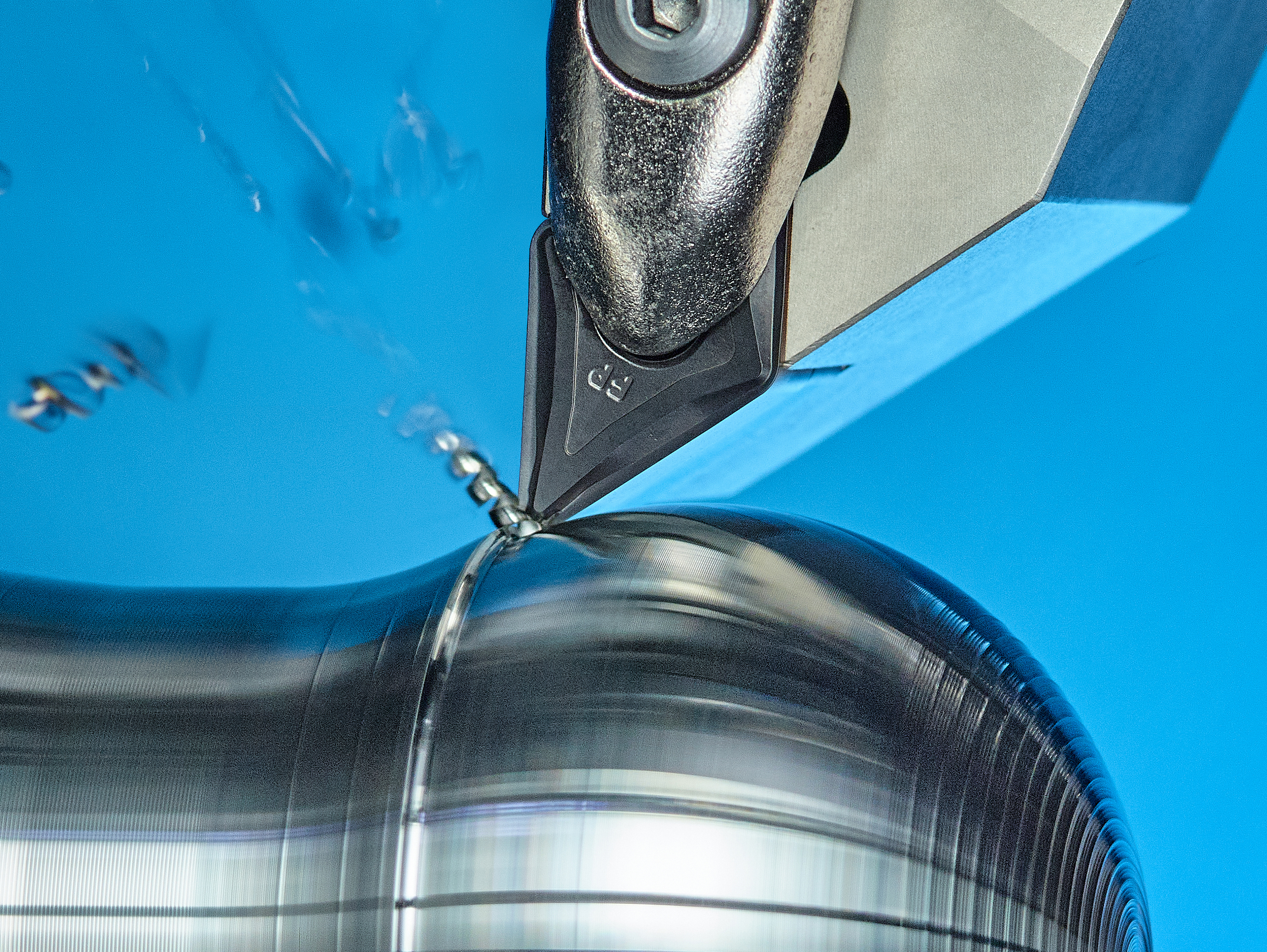 El acero dulce (acero de bajo carbono, 0,13–0,2% C) genera virutas largas y continuas durante el mecanizado. Si no se produce una rotura adecuada, estas virutas ocasionan rayaduras, enredos con la herramienta o la pieza, y dificultan la implementación de procesos automatizados. Para resolver estos problemas, KORLOY desarrolló el rompevirutas FP, diseñado para operaciones de acabado y procesos automatizados. Su geometría de dos etapas permite un control eficaz de la viruta desde acabados muy finos (ap 0,3mm) hasta acabados ligeros (ap 1mm). Además, la primera etapa de la geometría está optimizada para cortes de copia y cónicos, garantizando un manejo estable de la viruta incluso en acabados complejos. El filo de corte afilado reduce la carga de corte, minimiza las vibraciones y mejora la calidad superficial. Diseñado específicamente para el torneado externo de acabado, el FP combina un diseño optimizado con una amplia gama de calidades, asegurando alta calidad de superficie y precisión dimensional no solo en acero dulce, sino también en aceros al carbono, aleados y para rodamientos, sin riesgo de atascos de viruta.