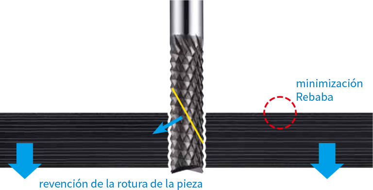 DiamLa forma de los filos de corte acorta la longitud de los filos reduciendo la carga de corte y previniendo de esta manera los defectos durante mecanizado. Además la forma de los filos ayuda a reforzar la sujeción debido a la mejora de la fuerza de corte en dirección descendente.