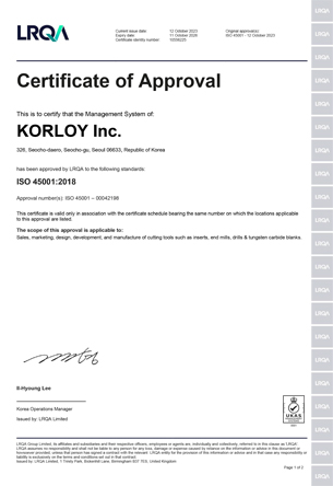 KORLOY s’efforce quotidiennement à développer des inventions originales.