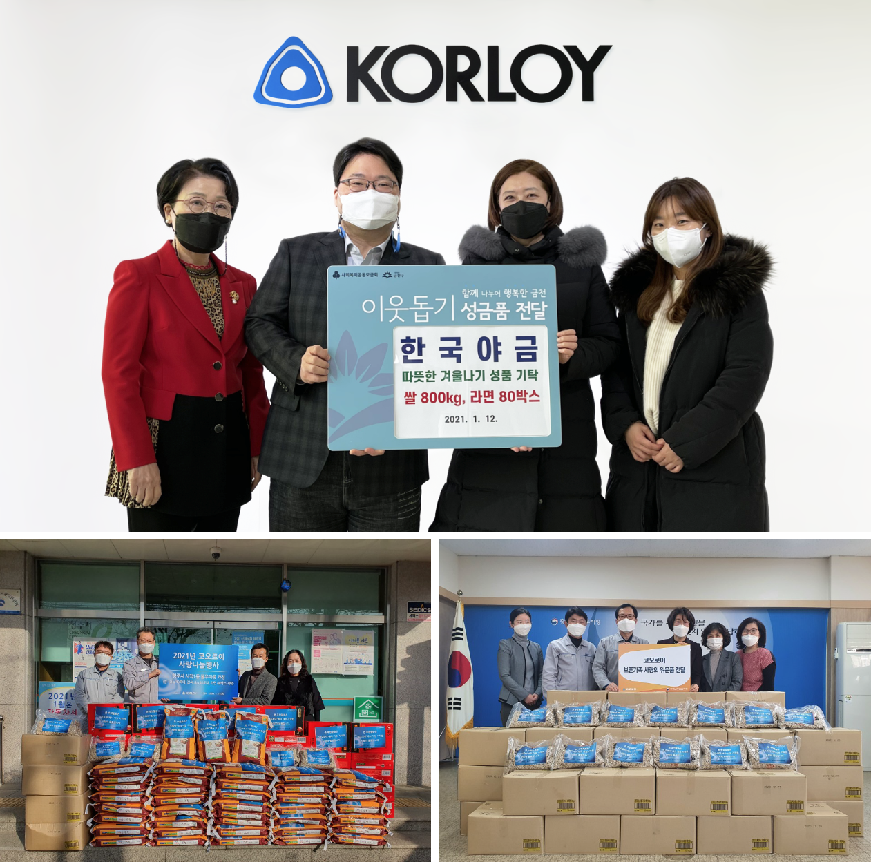 KORLOY continue ses actions caritatives en 2021 avec cet événement annuel qui consiste à partager chaleur humaine et support matériel en fournissant des produits de première nécessité tels que du riz et des ramen aux personnes âgées vivant seules et aux orphelins vivant à Séoul, Cheongju, Jincheon et Gwanghyewon.