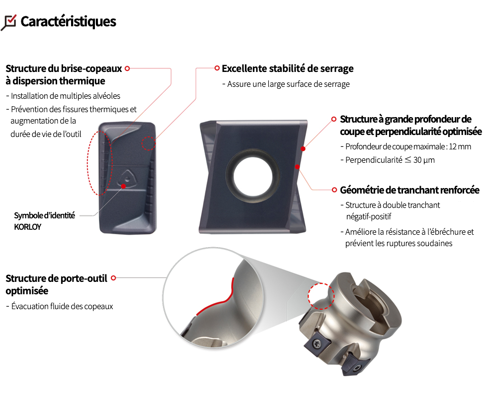 Ainsi, le TP4P offre une augmentation de la productivité de plus de 30 % par rapport au type radial grâce à des avances par minute accrues, une fixation stable et des arêtes tranchantes permettant des usinages à grande vitesse et à haute avance.