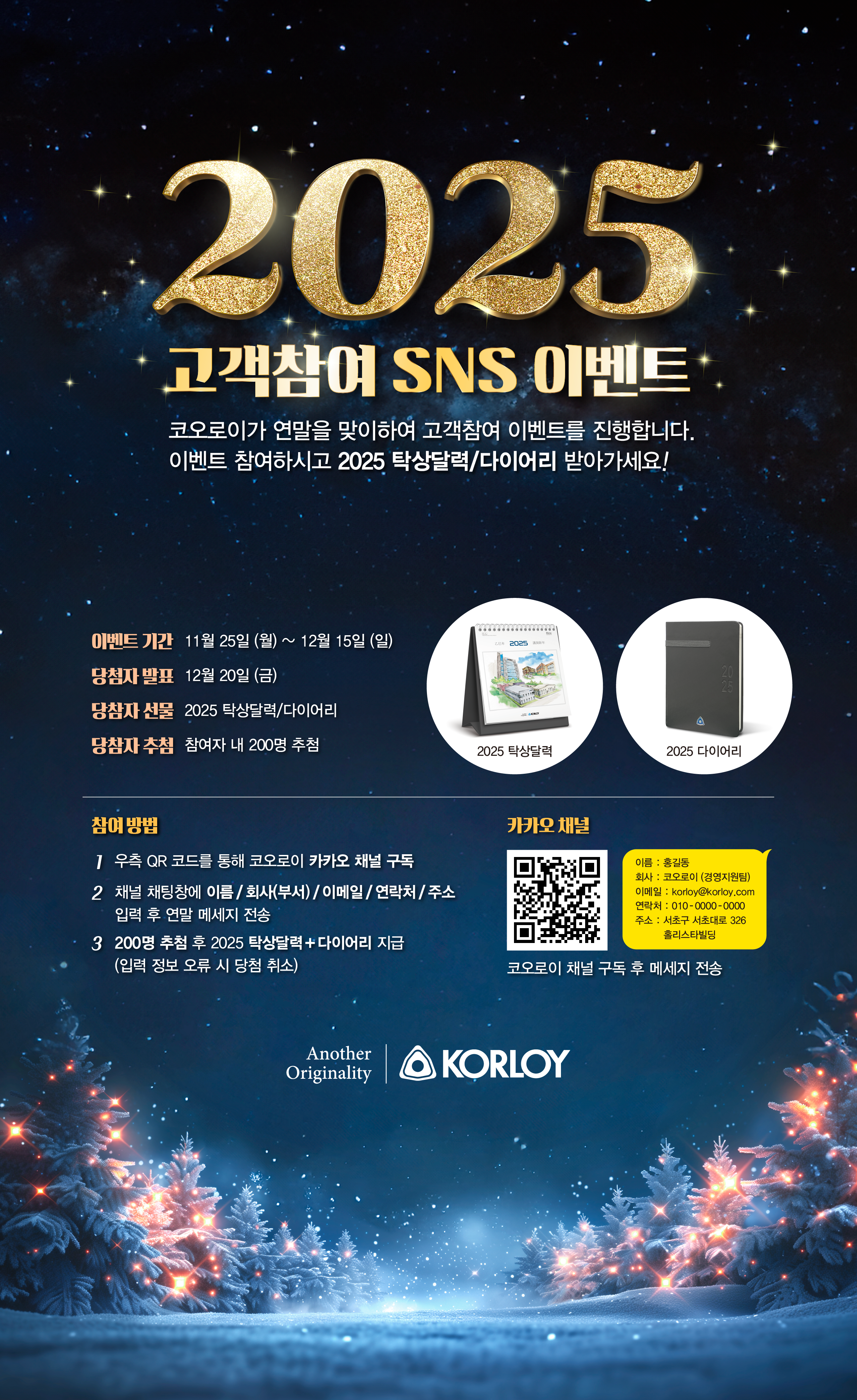 이번 행사는 11월 25일(월)부터 12월 15일(일)까지 코오로이 카카오채널 구독 및 메세지를 보내면