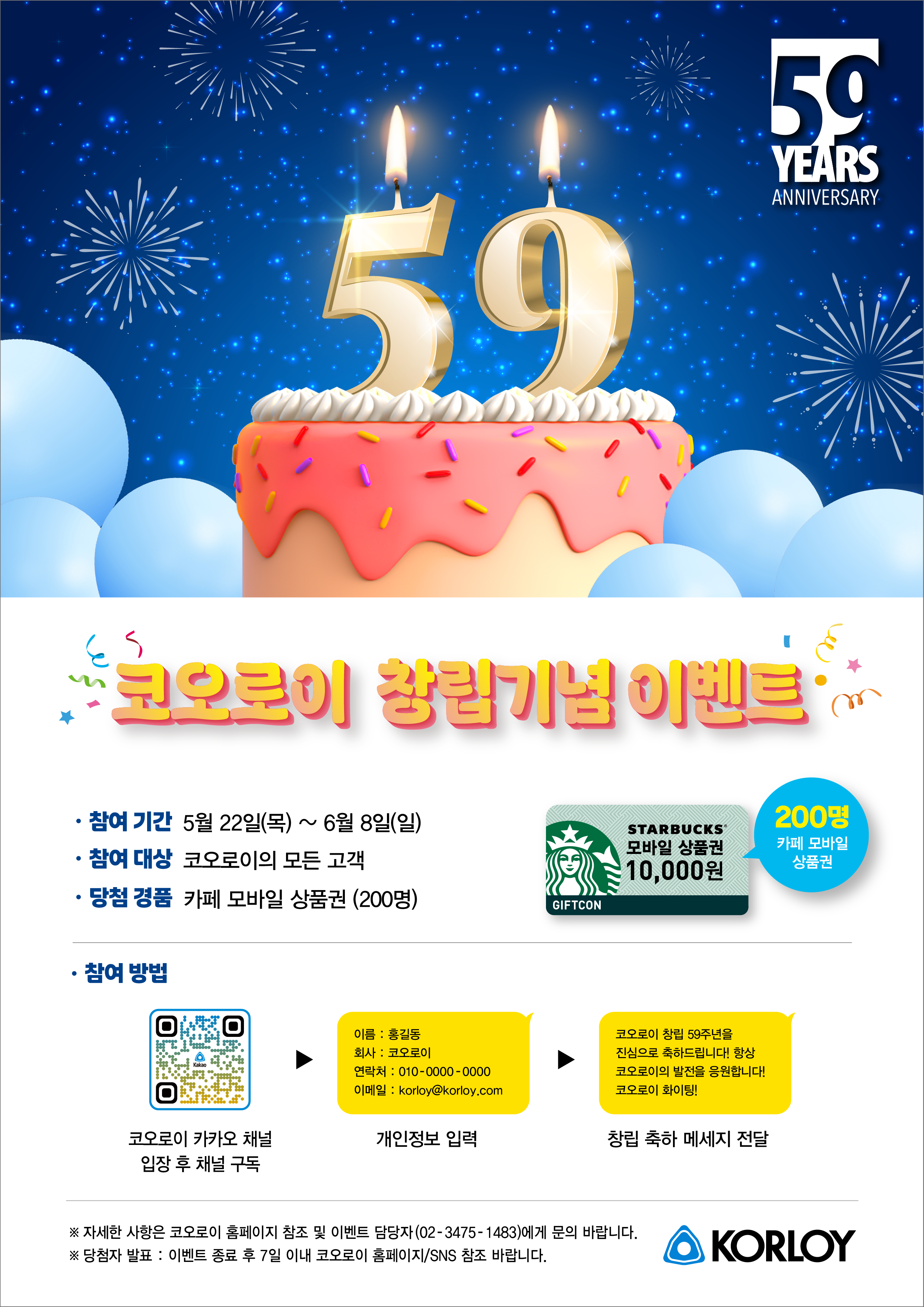 코오로이가 창립 59주년을 맞이하여 고객감사 카카오 채널 이벤트를 진행합니다!