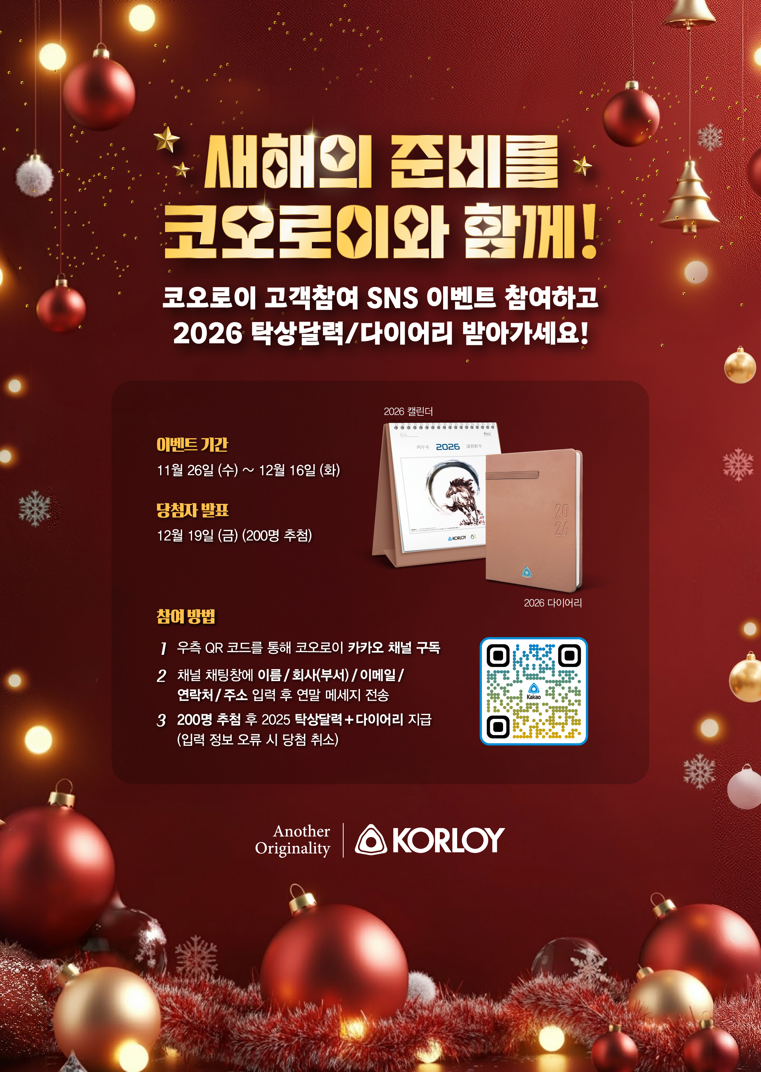 이번 행사는 11월 26일(수)부터 12월 16일(수)까지 코오로이 카카오채널 구독 및 메세지를 보내면