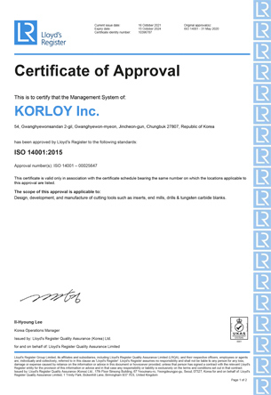 KORLOY, "Önce Mutluluk" yönetim felsefesine dayanarak, güvenli çalışma ortamlarını gerçekleştirmek ve üyelerimizin sağlığını geliştirmek için aşağıdaki güvenlik ve sağlık politikalarını uygulamaktadır.