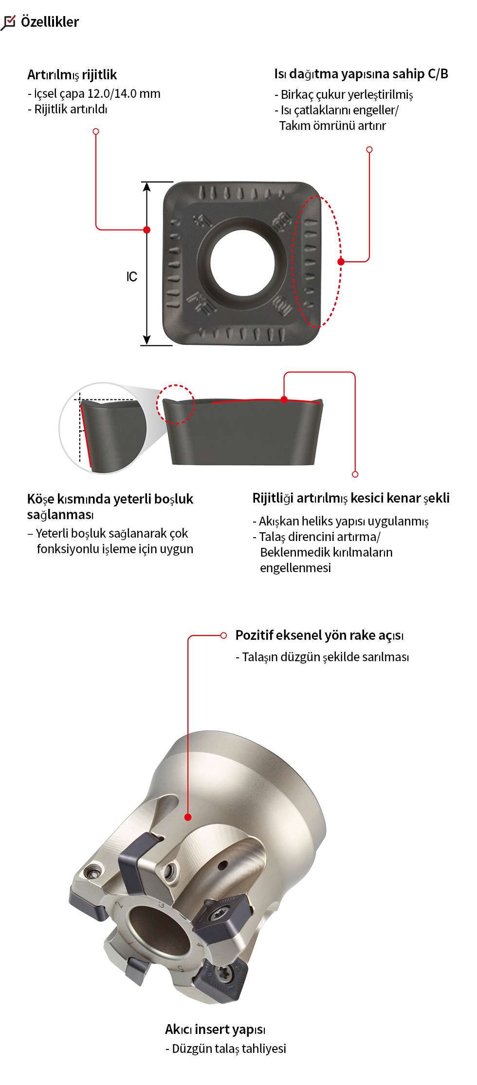 - Yüksek rijitlikli tutma sistemi (mevcut takımlara göre %20 daha yüksek besleme hızı)