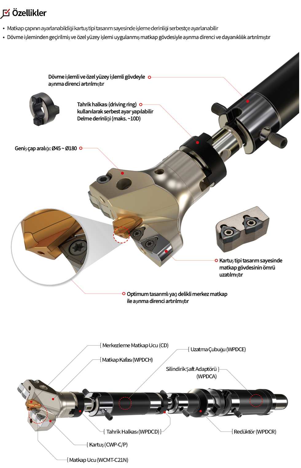 Derinlik ve çap ayarının serbestçe yapılabildiği WPDCH, bu gereksinimleri karşılayarak en uygun işleme çözümünü sunar.